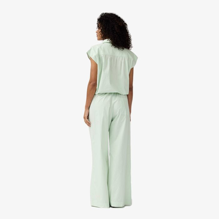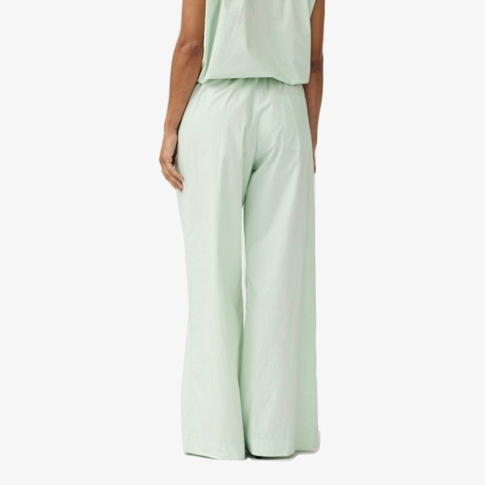 Deze heerlijke broek van poplin was al favoriet en in deze leuke mintgroene tint extra zomers! De broek heeft een elastische taille met bandplooi en de broek heeft steekzakken. Combineer met de bijpassende top of een voor een top in wit, lichtgrijs of andere pasteltint als je durft!