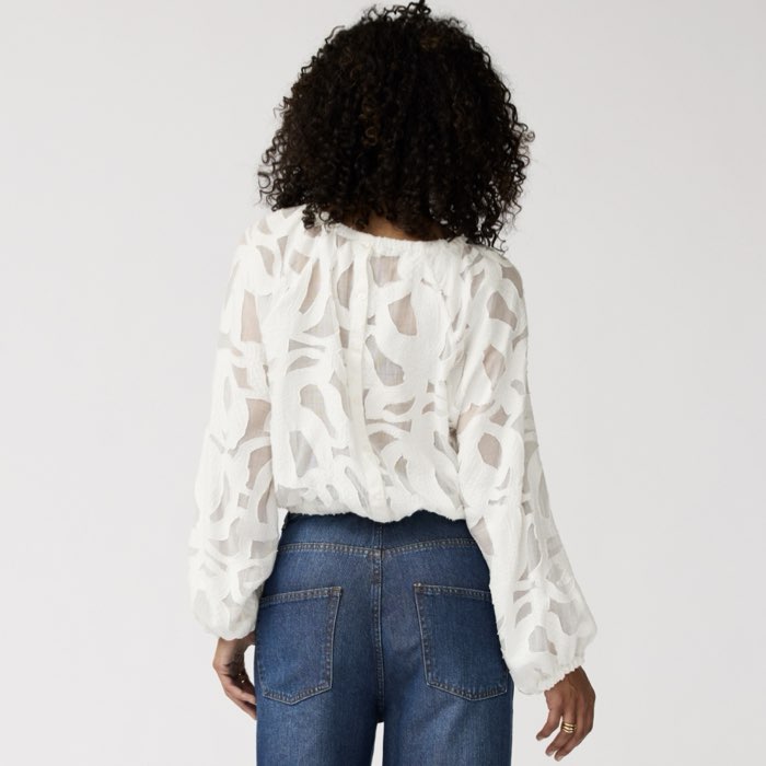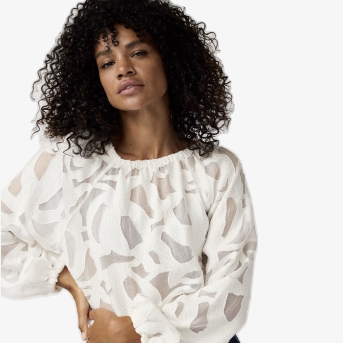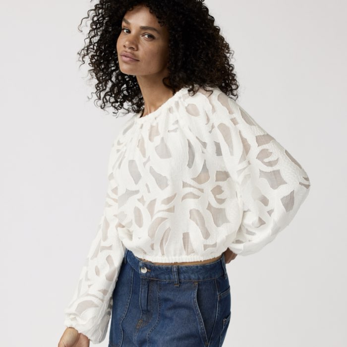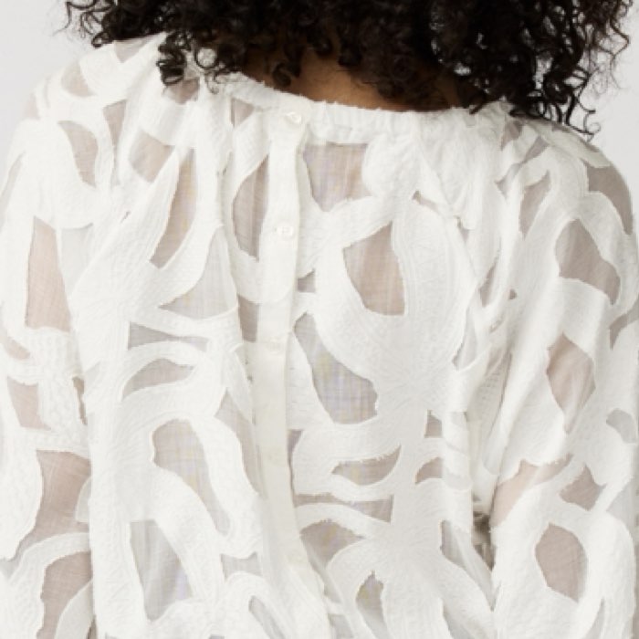 Prachtige wat kortere witte semi transparante blouse met bloemenprint. De top heeft een leuke elastieken boothals en boorden waardoor deze mooi elegant valt. Op de achterkant heeft de blouse knoopjes voor net dat beetje extra. Draag op een (grijze) jeans met hogere taille of ga voor chic op een mooie pantalon. Het bloesje is er ook in het donkerblauw.