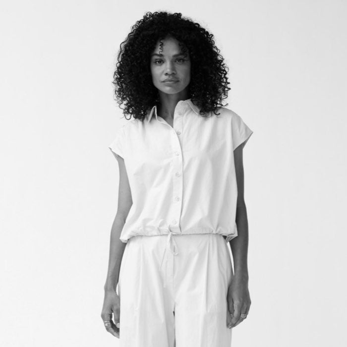 Veelzijdige witte mouwloze top. Draag gesloten of open over een topje. Trek de koordjes aan of laat ze lekker los. Draag de top op een jeans, een witte broek of een lekker zomers kleurtje. De top staat ook leuk over een jurkje. Maak je look compleet met de bijpassende witte geborduurde Moonflower broek. De top is er ook in het mintgroen en zand.