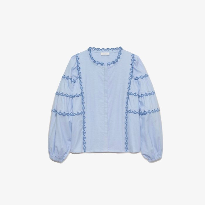 Lichtblauwe geborduurde blouse Milly van Alchemist