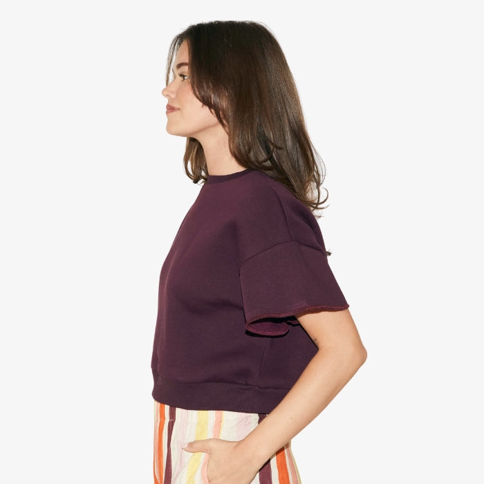 Bordeauxrode Sweater met Korte Mouw van Re/Born