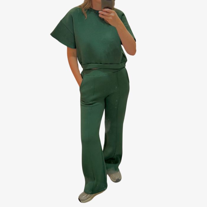 Donkergroene Sweater met Korte Mouw van Re/Born
