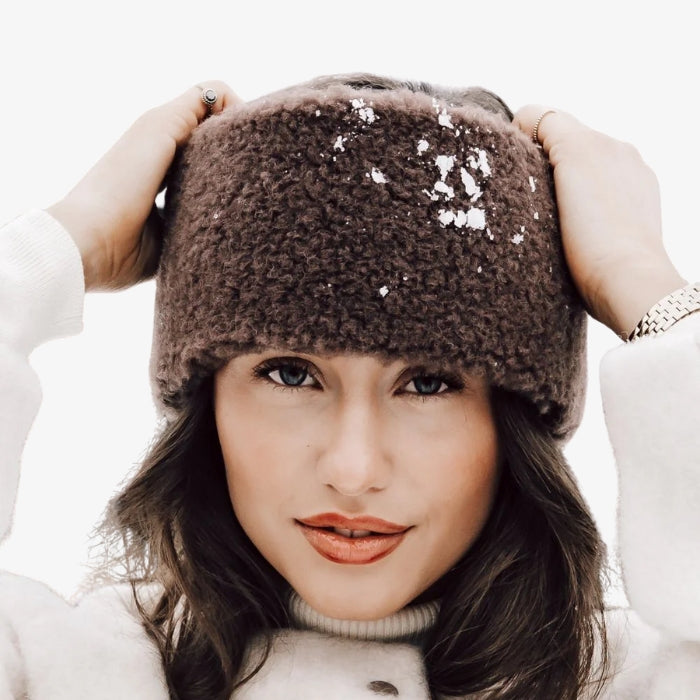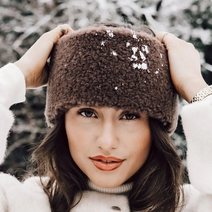 Houd je hoofd lekker warm met deze zachte donkerbruine wollen hoofdband van Alwero.