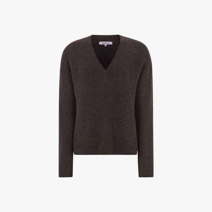 Bruine Gebreide V-hals Trui West van Soft Rebel