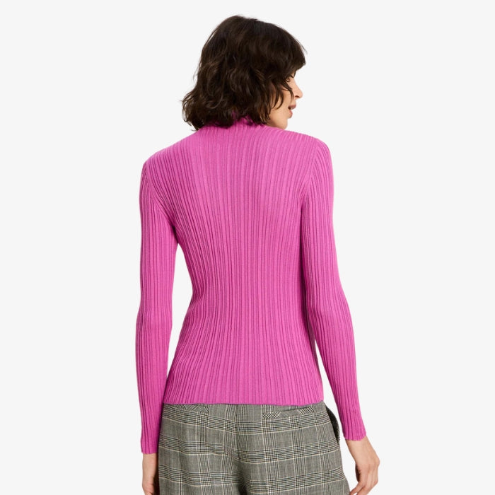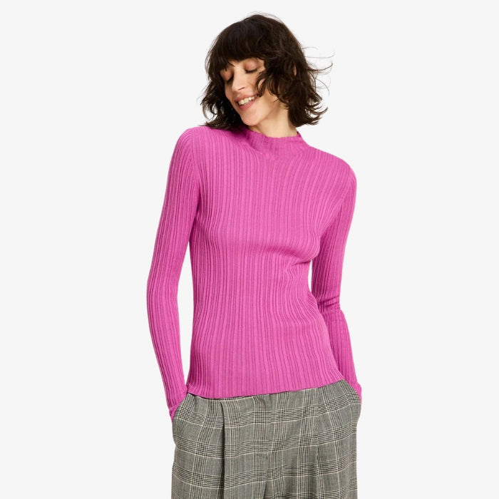 Donkerblauwe rib top met opstaande boord van biologisch katoen. De perfecte basis top voor onder al je jasjes, vesten en gilets. De top zit aangesloten maar is dankzij het rib breisel heel flexibel. Het truitje heeft lange mouwen.